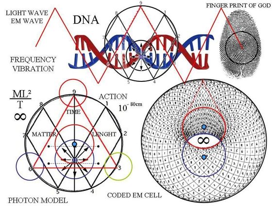 To dává velmi základní popis infrastruktury DNA. Systémy uvolňující transformaci energie, které jsou zdrojem života, jsou numericky znázorněny na jejich geometrických fyziologických strukturách.