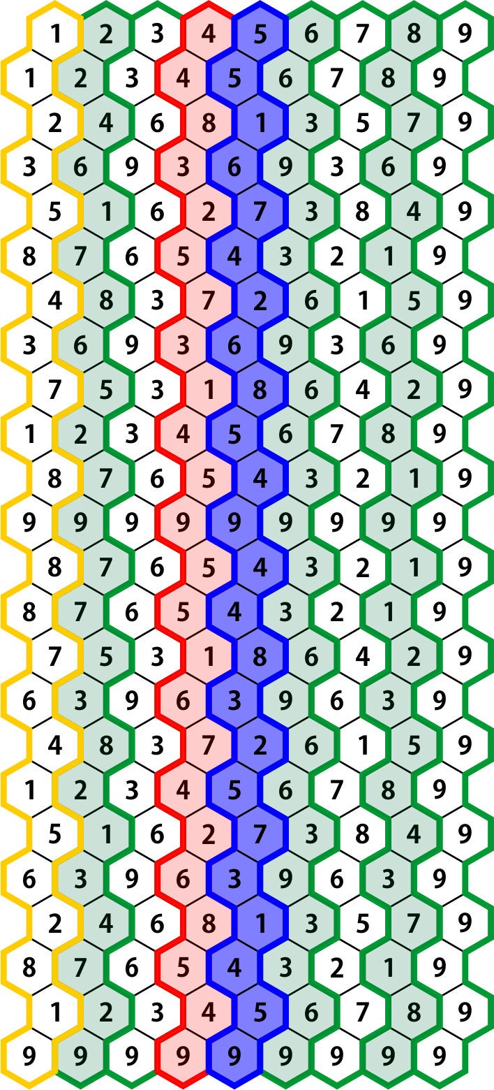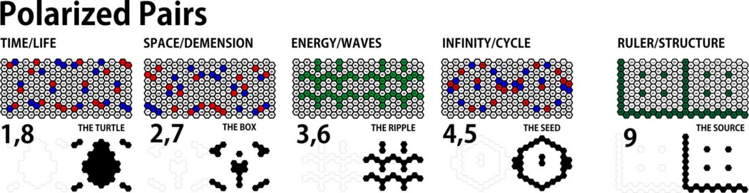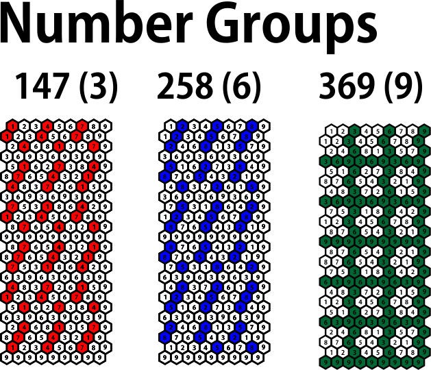 Způsob, jakým se vzory shodují, se ve skutečnosti dělí 1-9 na 3 skupiny (1,4,7) (2,5,8) a (3,6,9). Doslova vytváří polaritu mezi čísly a skupinami čísel.