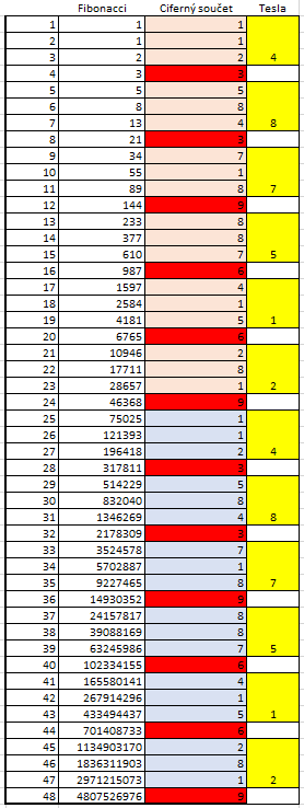 Dalo by se tedy říci, že ve Fibonacciho posloupnosti jsou 3 Teslovy kódy: